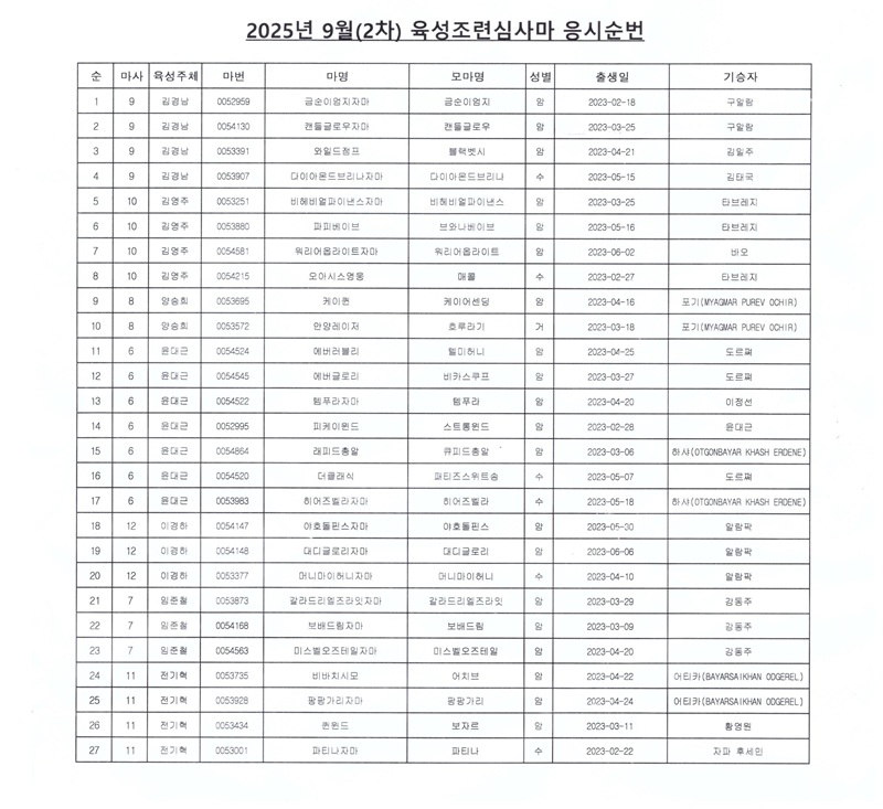 2025년 5월 장수(내륙) 경매 출전마(일부)