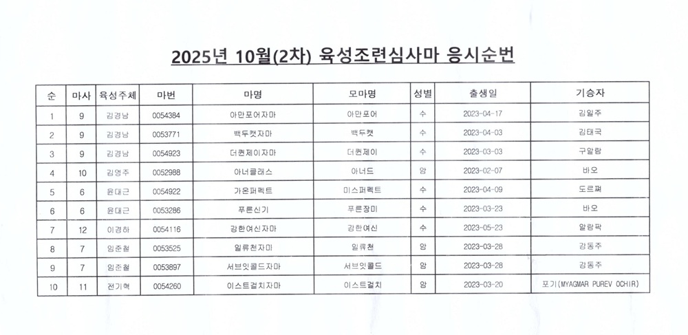 미리보는 '25년11월 1세 제주경매 출전마(2부)